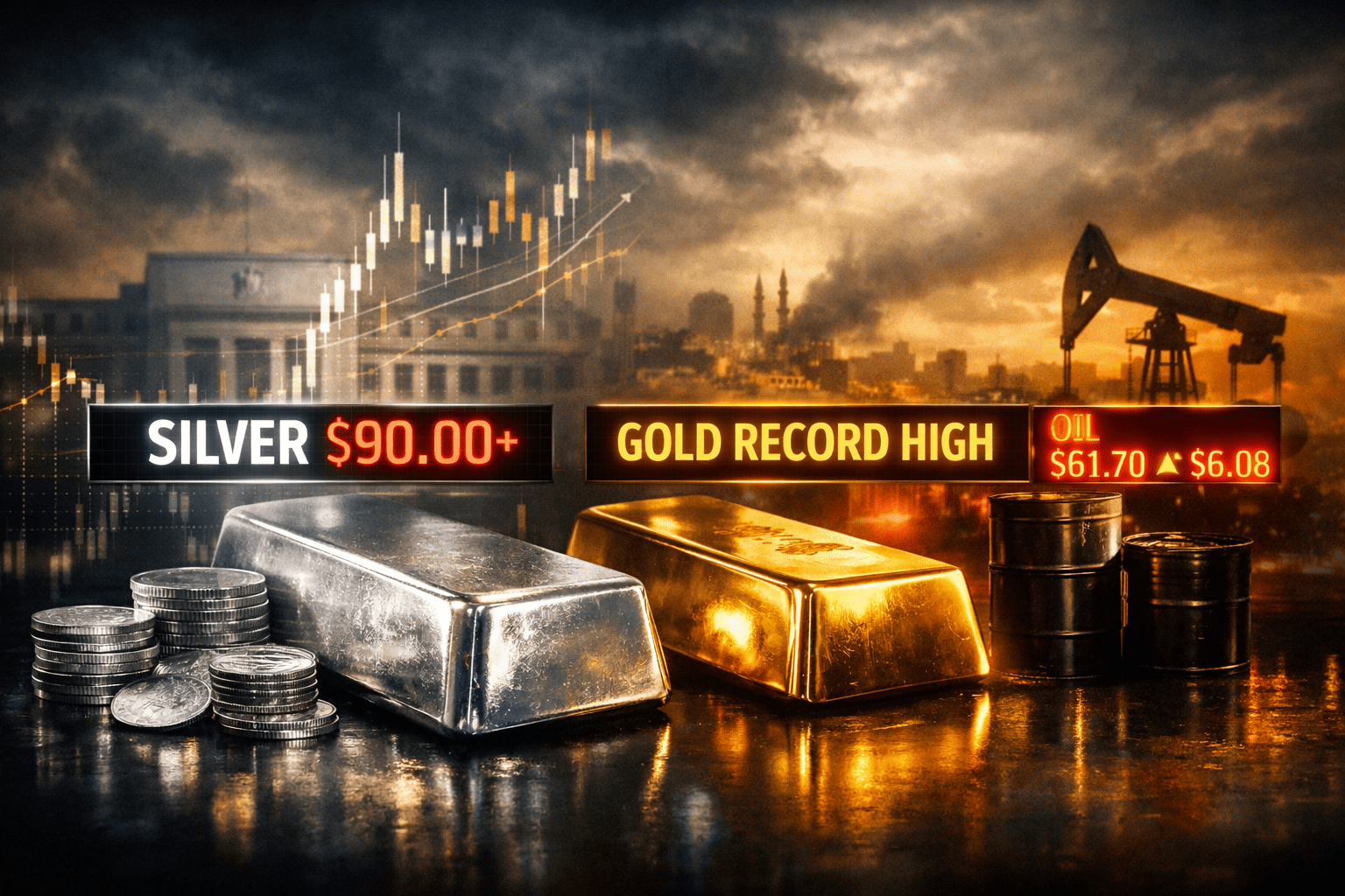 Commodity wrap: silver shatters $90/oz barrier, gold continues rally; oil climbs